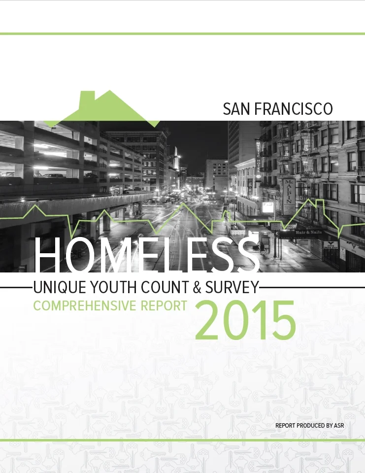ASR has provided project planning and implementation, oversight, enumerator and surveyor training, data tabulation and analysis, as well as a comprehensive report of the findings. ASR uses methodology commended and recommended by the federal Department of Housing and Urban development. This methodology uses homeless workers and volunteers to canvass every area of the county and follow up with a face-to-face survey eliciting the details of the enumerated population. The results of the census and survey produce a point-in-time count and annual estimation of homelessness in San Francisco City and County, and provide the County with information about its homeless population. This data has helped the county and local homeless service providers better understand the needs of their community, evaluate their current system of services, and apply for federal and local funding.